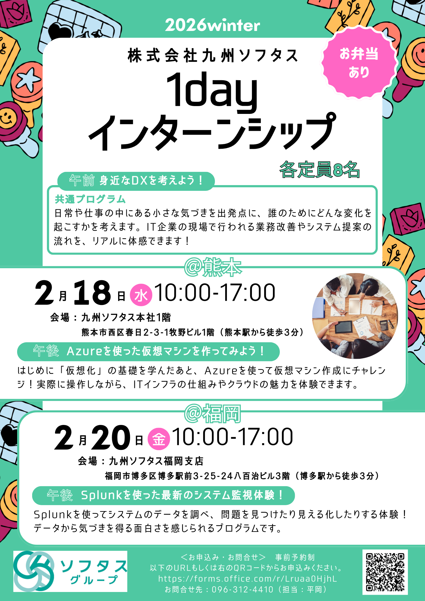 九州ソフタスでは、以下の日程でインターンシップを開催します。